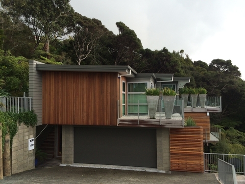 It’s combination of metal longrun roofing, cedar cladding, linea weatherboards and polished masonry block exterior makes for a seamless combination of materials which blends into its surroundings.